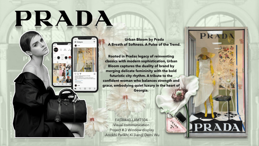 This conceptual window display reimagines Prada’s minimalist storytelling through a sculptural, editorial lens. Inspired by the brand’s architectural precision and quiet confidence, the design juxtaposes shadow and structure to evoke curiosity and contemplation. The visual narrative celebrates the balance between innovation and tradition — embodying Prada’s philosophy that true luxury lies in subtlety.