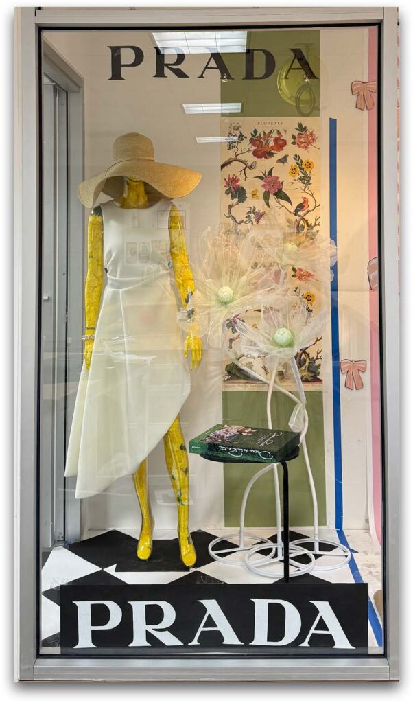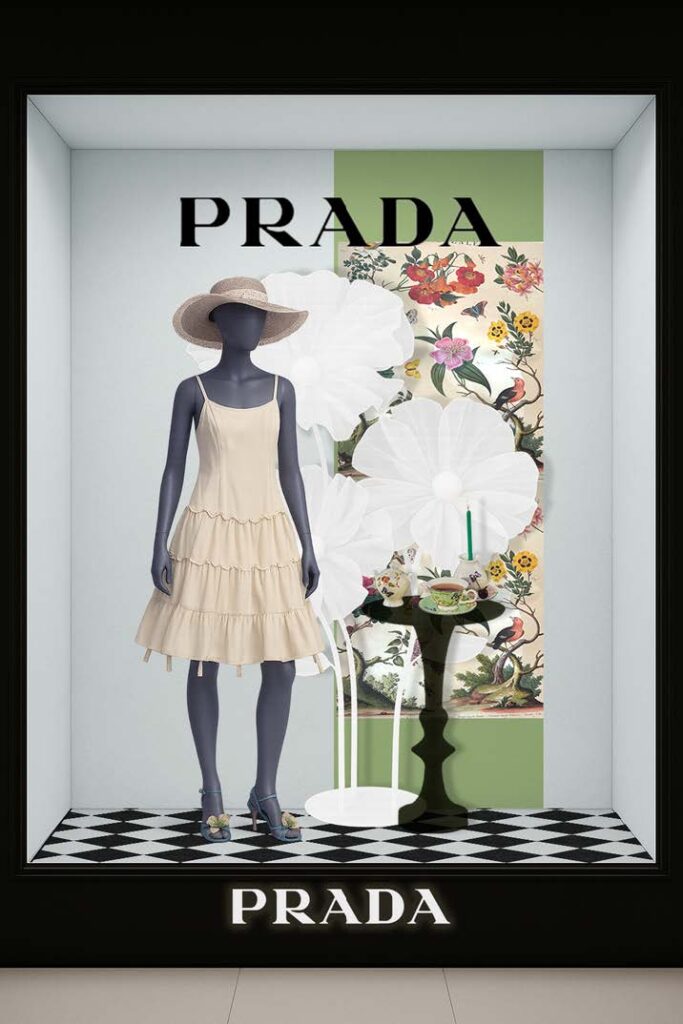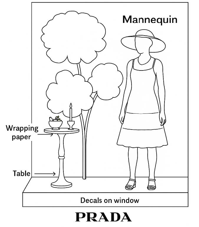 To design a seasonal window display for Prada that visually communicates the brand’s essence of timeless sophistication and modern restraint, while resonating with a contemporary luxury audience.